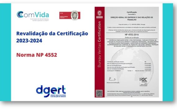 Divulgação da evalidação da certificação do ComVida-Sistema de Gestão da Conciliação da Vida Profissional, Familiar e Pessoal da DGERT, na norma NP 4552.