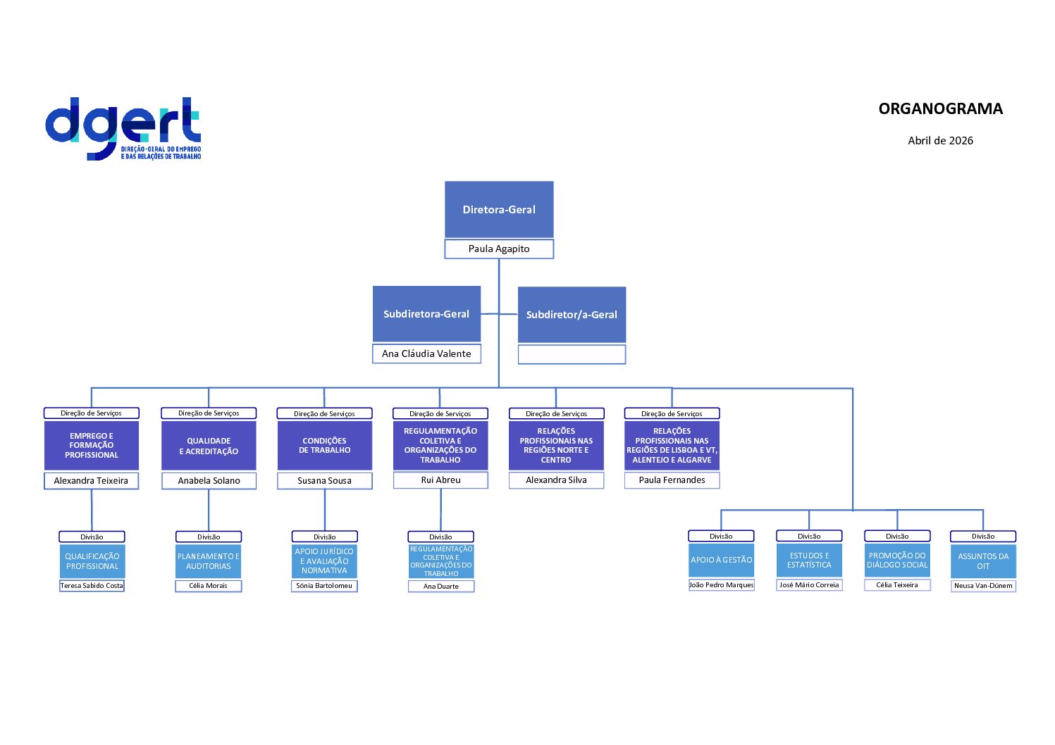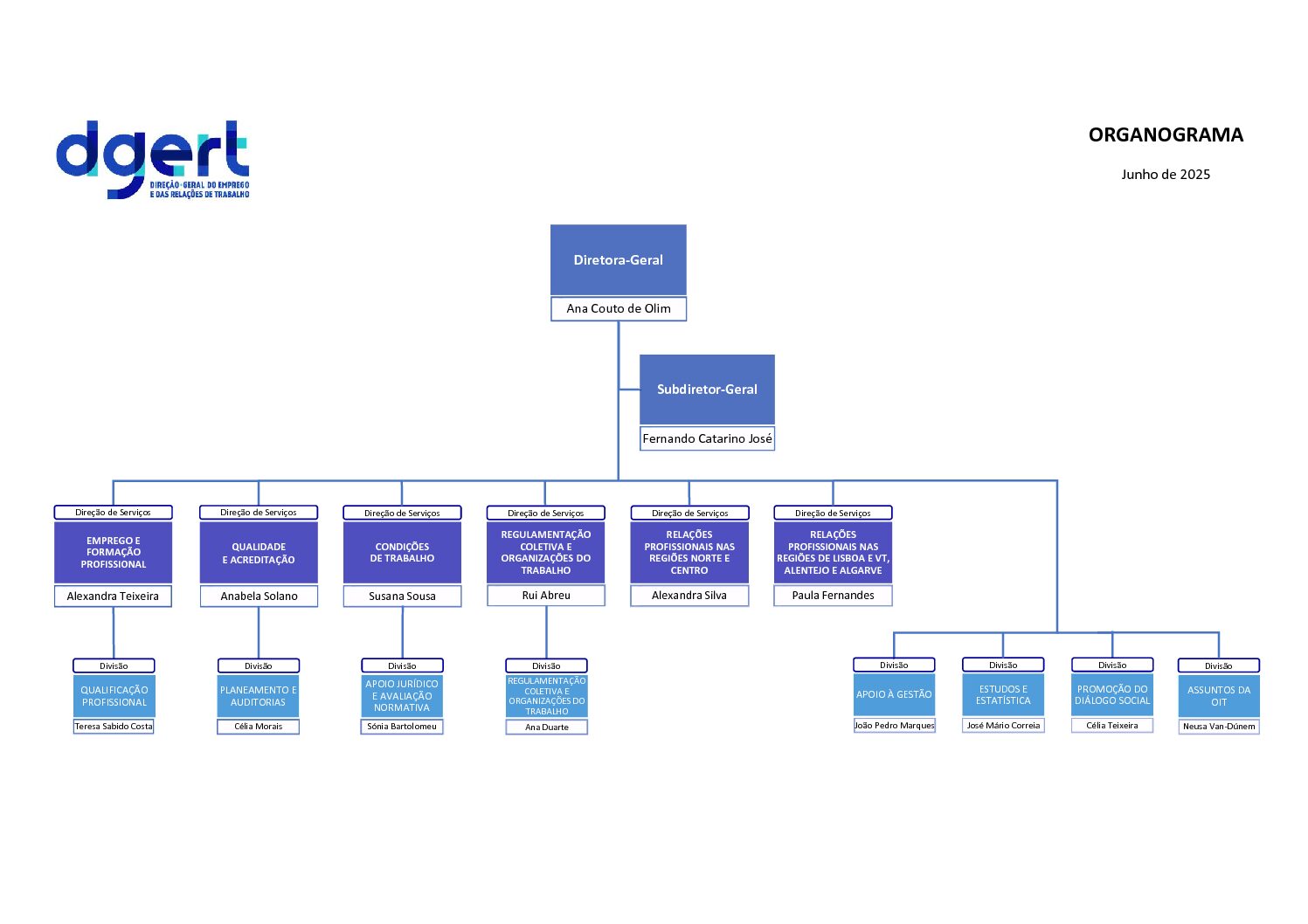 A DGERT encontra-se organizada por 6 unidades orgânicas e 8 divisões.