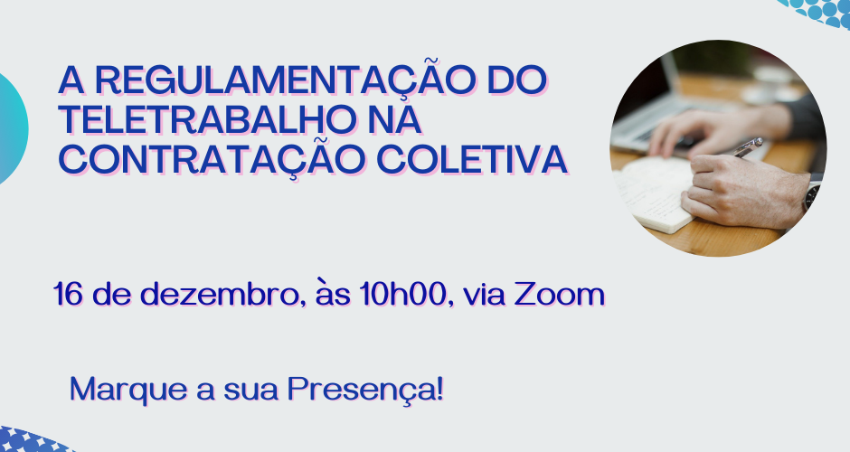 Este webinar integrará um painel de convidados que irá analisar e debater o regime jurídico do teletrabalho em geral, bem como, uma mesa-redonda com a participação de parceiros sociais, subordinada ao tema “Teletrabalho e contratação coletiva: desafios e oportunidades”